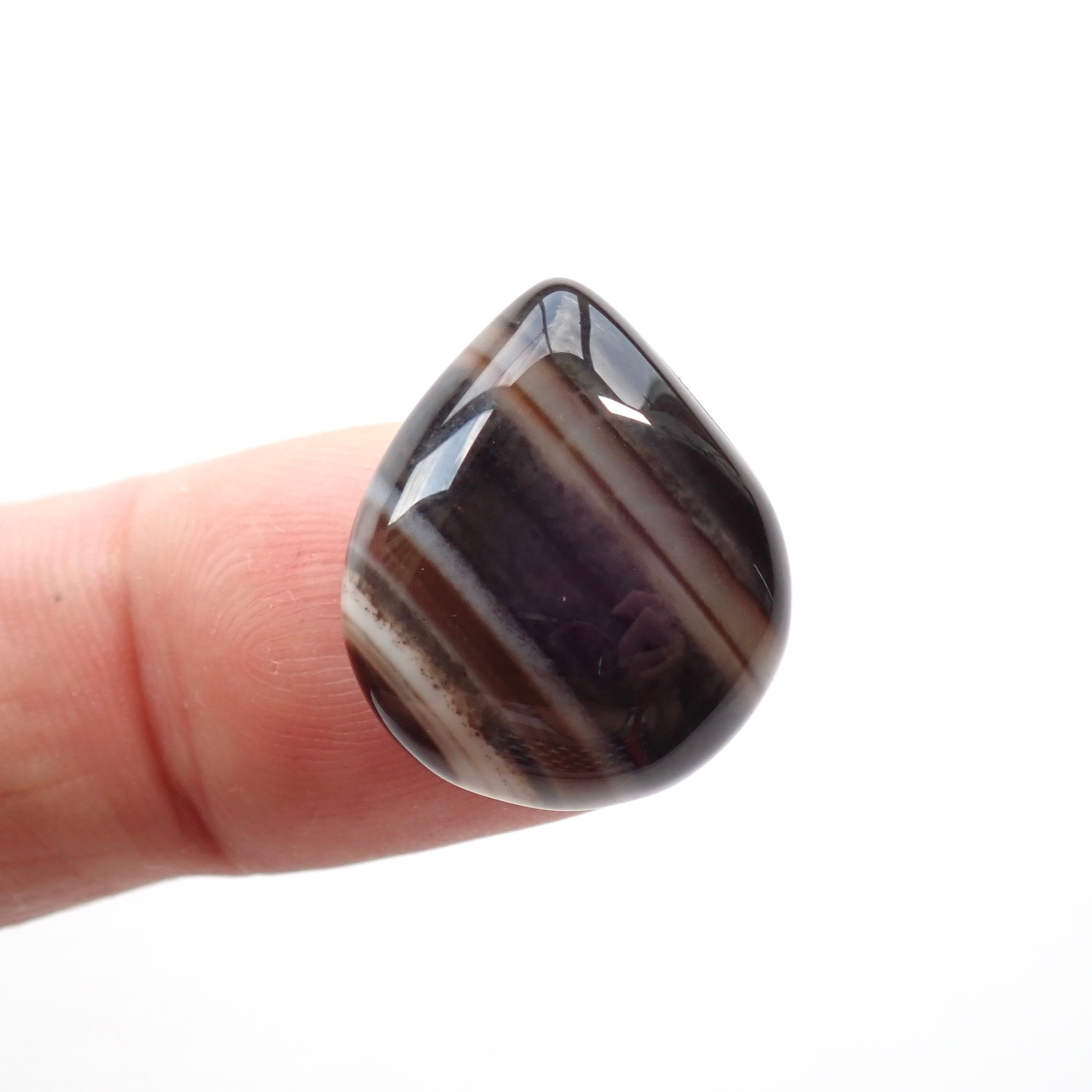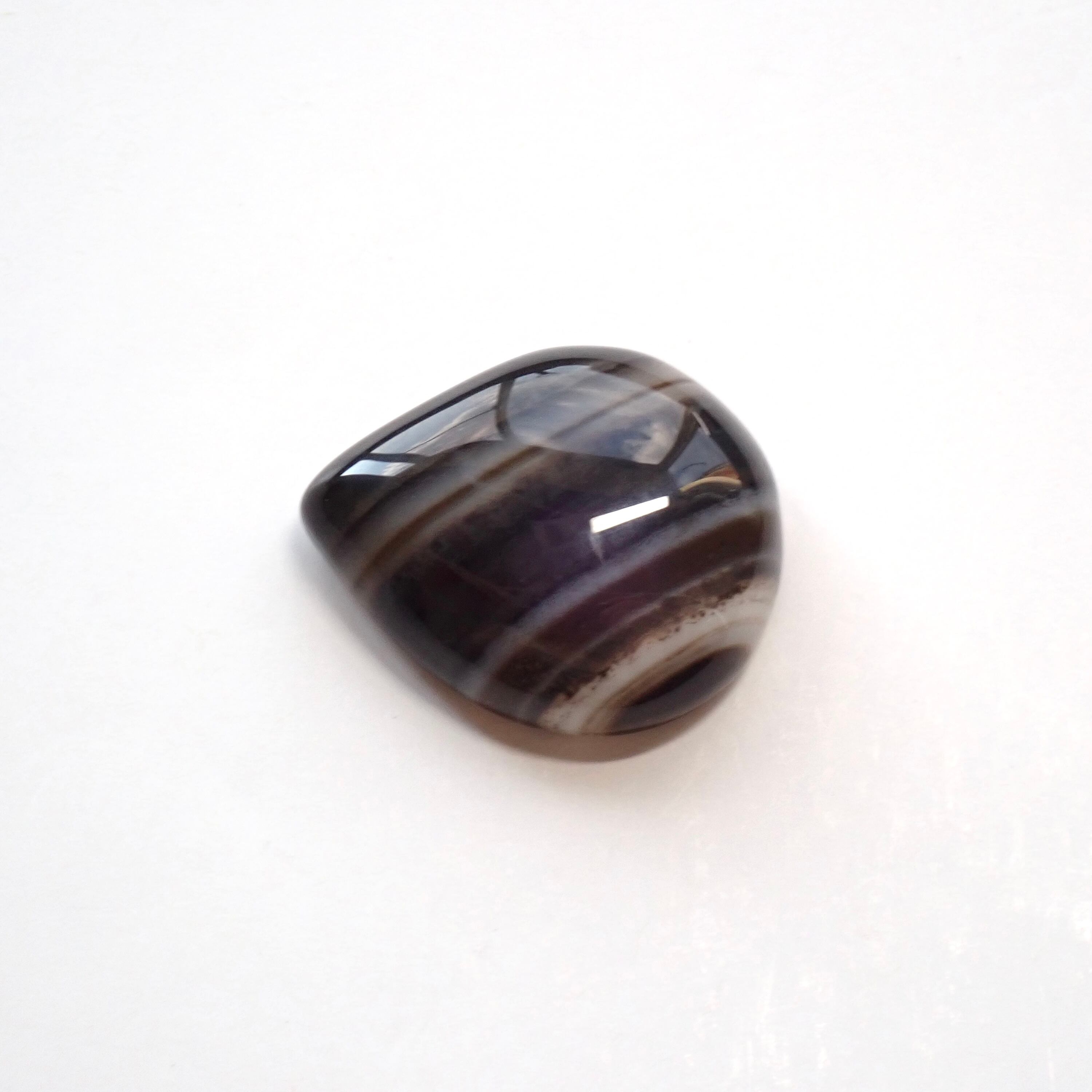 白と黒のモノトーン縞模様と他にもオレンジ、ピンク、緑、青など、さまざまな色合いがあります。色や産地によってオニキス、ボツワナアゲート、またチベット産の眼の様な加工をされたものは天眼石と呼ばれています。